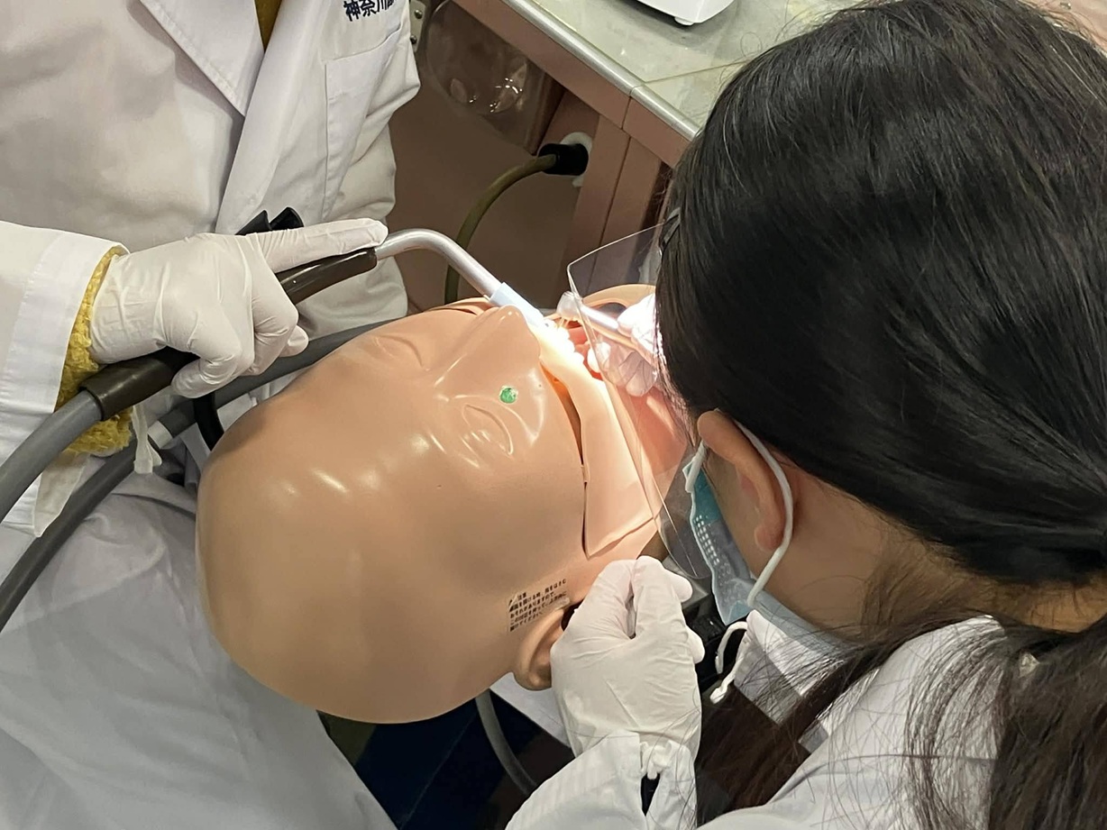 キャンプでは、神奈川歯科大学が独自に整備した実習台を用いて歯科保存学の実習を行うとともに、普段は立ち入ることのできない手術室や薬剤部などの病院施設を見学しました。さらに、各分野を専門とする教授陣をはじめ、看護師長や薬局長の方々から直接お話を伺うことができ、生徒にとって大変貴重な学びの機会となりました。