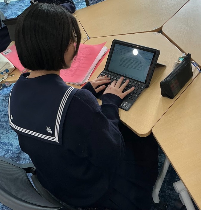 中学1年生の書写の授業では、3学期に学んだ行書による創作活動として、オリジナルのグラス作りをしています。