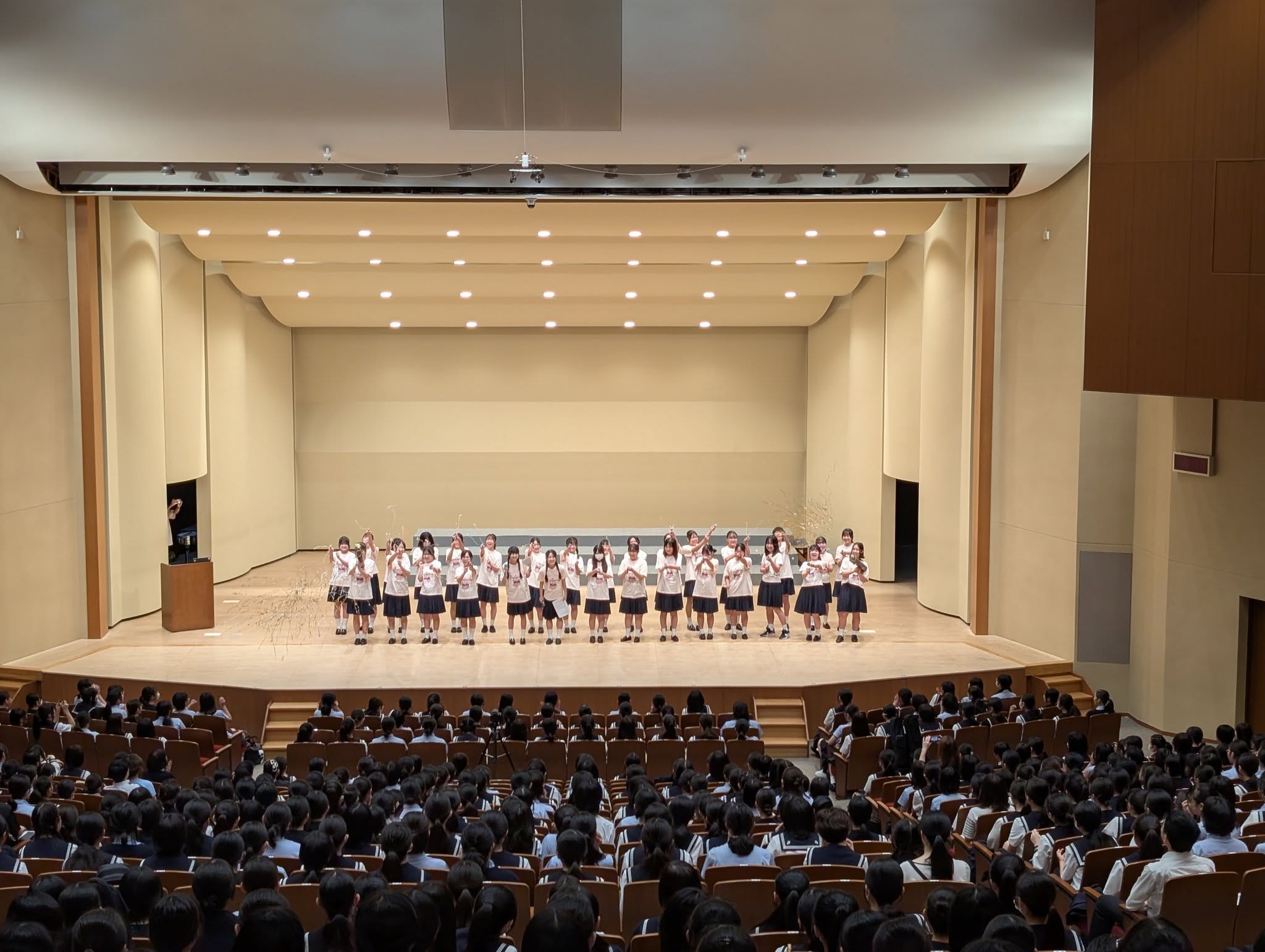 前日祭では「夢をかなえる企画」と称して、実行委員が生徒たちの前でパフォーマンスをしたい団体を募集し、ダンスや自作のドレス、歌などが次々に披露されました。友人の隠れた才能に、生徒たちは大盛り上がり!また、聖ポーロ祭に参加する部活や有志団体のPR映像の上映や、対面でのパフォーマンスが行われ、会場となった白百合ホールは熱気に包まれました。