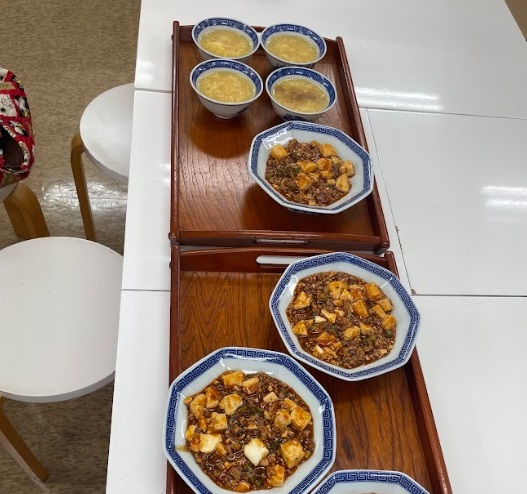 この日の献立は、本格的な麻婆豆腐、優しい味わいの卵スープ、そしてごはんの三品。生徒たちは4~5名の班に分かれ、一つのキッチンを囲みました。慣れない包丁さばきに真剣な表情を浮かべる生徒、計量で「これで合ってる?」と確認し合う声、そして、焦げ付きそうになる鍋を仲間と笑いながら救出する一幕など、どの班もチームワークが試される瞬間の連続でした。