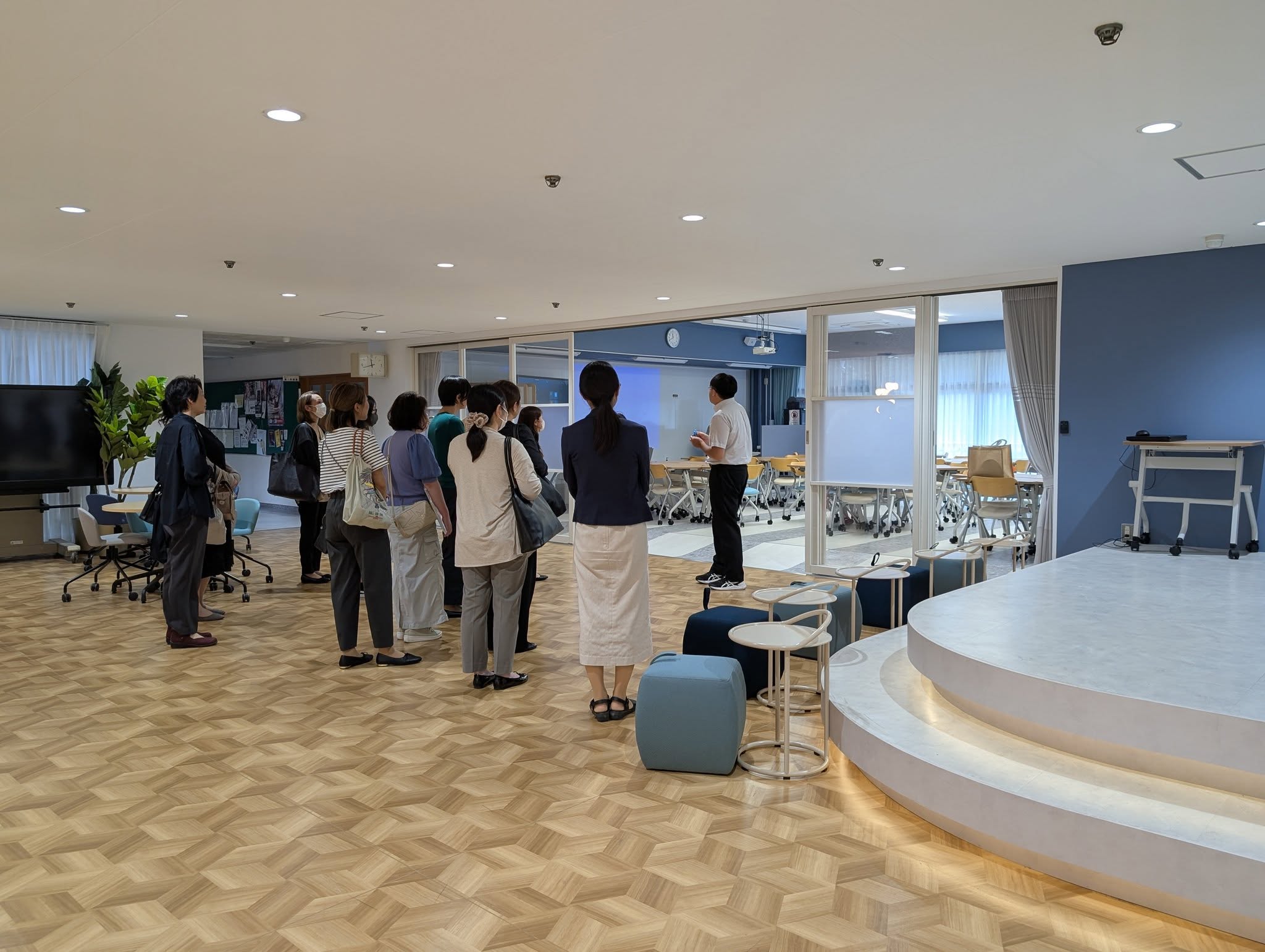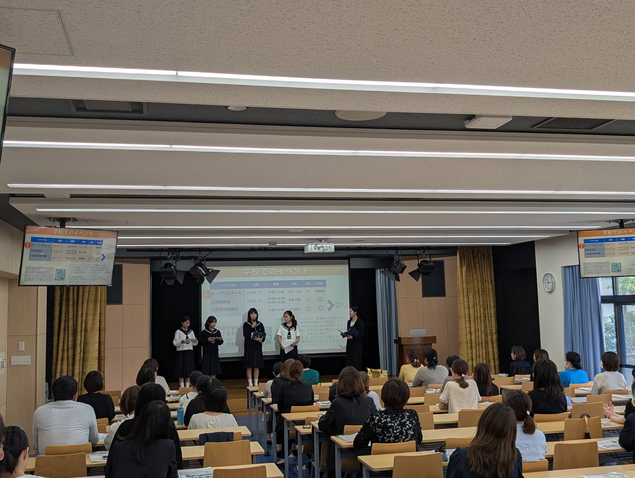 学校の教育内容や最新の入試情報について詳しくお伝えしたほか、生徒たちが学ぶ授業の様子もご見学いただきました。特に、リニューアルしたばかりの「クリエイティブスペース」は、保護者の皆様の関心が高く、熱心にご覧になっていました。ちょうど3Dプリンターが稼働しており、生徒たちがデザインした名札などが出来上がっている様子を、情報科の教員が詳しくご説明する場面もありました。個別相談では、入試に関する具体的なご質問も増え、皆様の受験への意欲を感じました。11月の「入試説明会」では、入試に特化して詳しくお伝えする予定です。