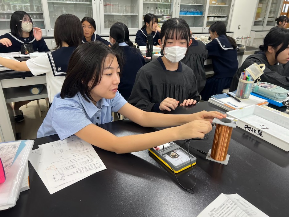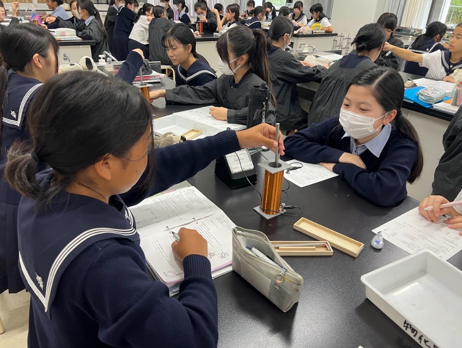 実験を進めるうちに、生徒たちは磁石の動きと電流の向き・大きさとの間に一定の規則性があることを自分たちで発見。観察や結果を基に意見を交わしながら、電磁誘導の仕組みへの理解を一層深めることができました。生徒たちにとって、理科の楽しさと探究する喜びを味わえる貴重な時間となりました。