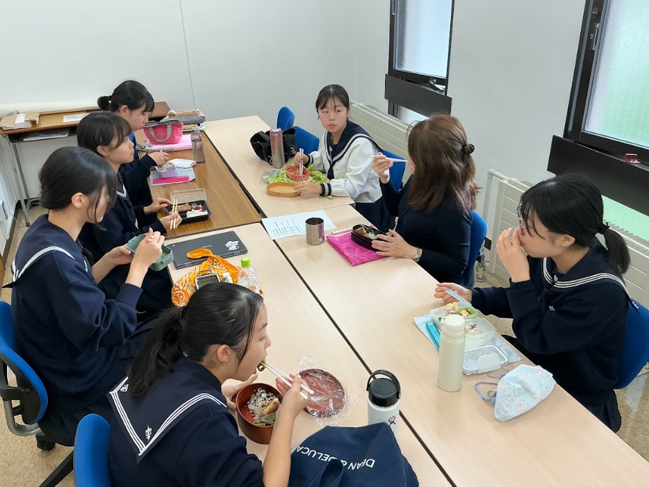 この取り組みは、生徒の声を直接聞ける場を設けたい、という校長先生の提案から実現したもので、お弁当を囲みながらリラックスした雰囲気の中で意見交換が行われました。