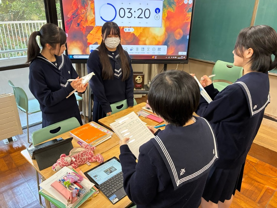 中学3年生の英語の授業では、1月に予定されているスピーチ発表会に向け、現在、クラス内でのグループ発表や全体発表を通じて準備を重ねています。