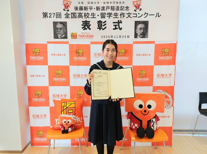 本校の高校1年生が、「後藤新平・新渡戸稲造記念第27回全国高校生・留学生作文コンクール2025」に応募し、奨励賞を受賞しました。