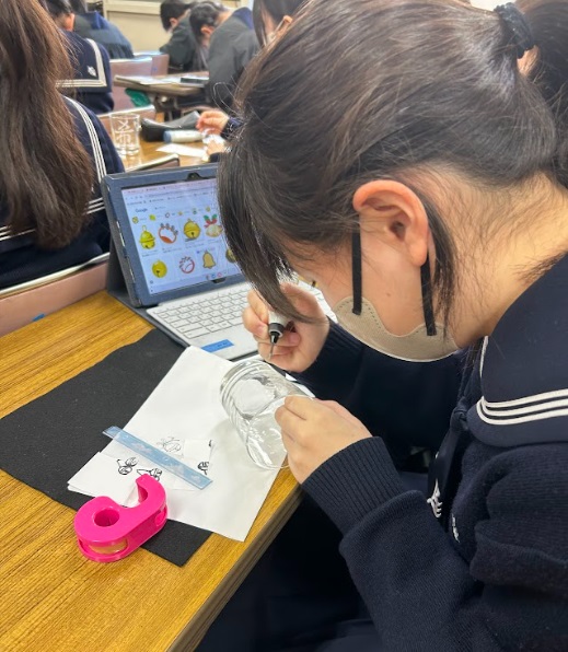 中学1年書道 オリジナルグラスづくり