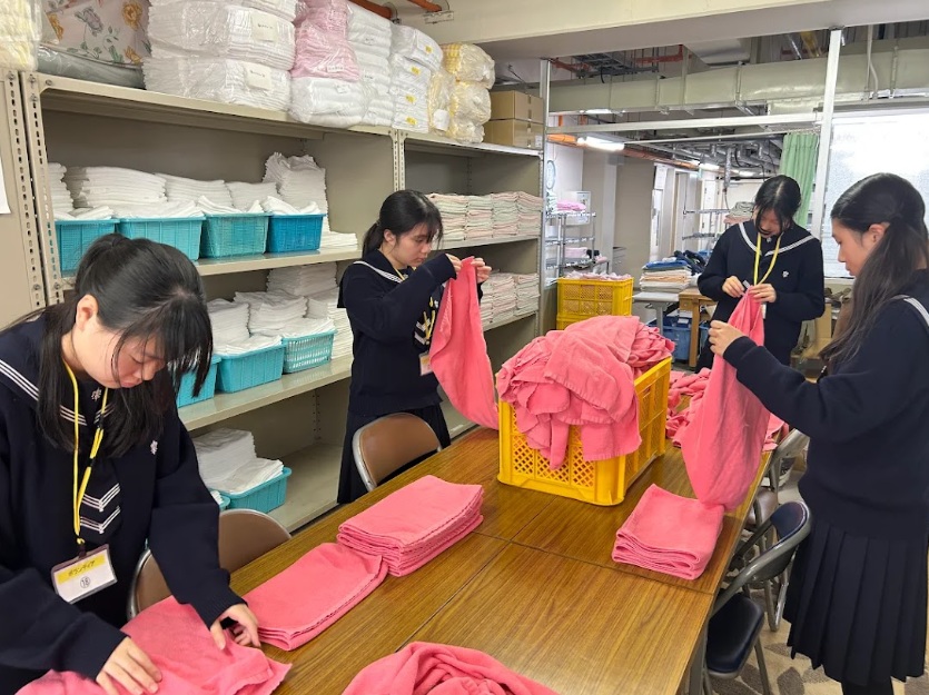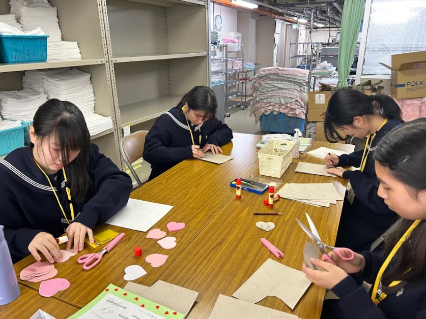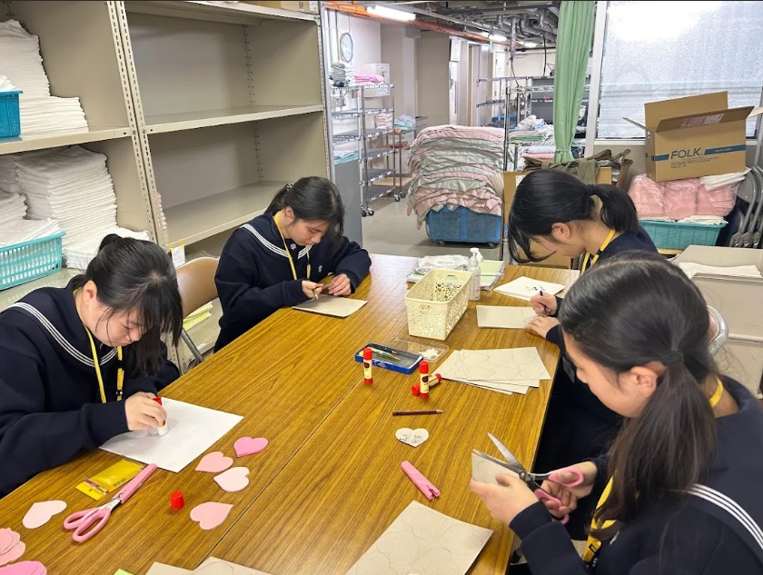 先日も、鎌倉高校前にある聖テレジア会が運営する重症心身障がい児施設「小さき花の園」を訪問し、奉仕活動を行いました。当日は、施設内の洗濯室でタオルを一枚一枚丁寧に畳んだり、施設で利用されるメッセージカードの台紙作りをお手伝いしたりしました。どの作業も決して目立つものではありませんが、施設の皆さまの日々の生活を支える大切な役割であることを実感する機会となりました。活動を通して、生徒たちは奉仕とは特別なことではなく、身近なところから始まるものであることを学ぶことができました。