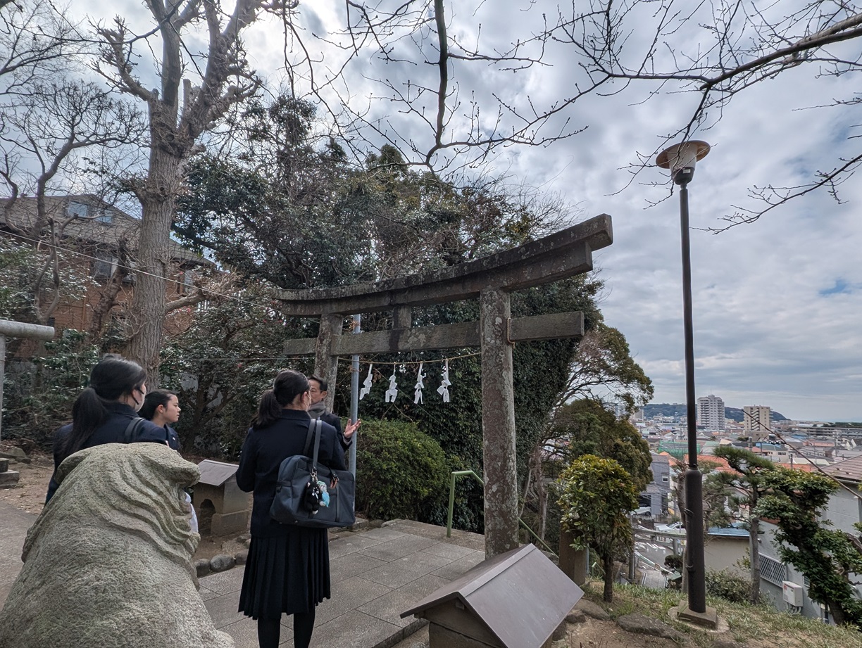 テーマは「地域の魅力を知ろう」。地域創成科学科の入江彰昭教授のご指導のもと、藤沢市役所の方からも学校が位置する片瀬地区の歴史についてお話を伺いました。その後は実際にフィールドワークへ。藤沢宿からの旧街道が残る町並みを歩き、歴史と現代のつながりを感じながら、地域の課題や疑問を収集しました。