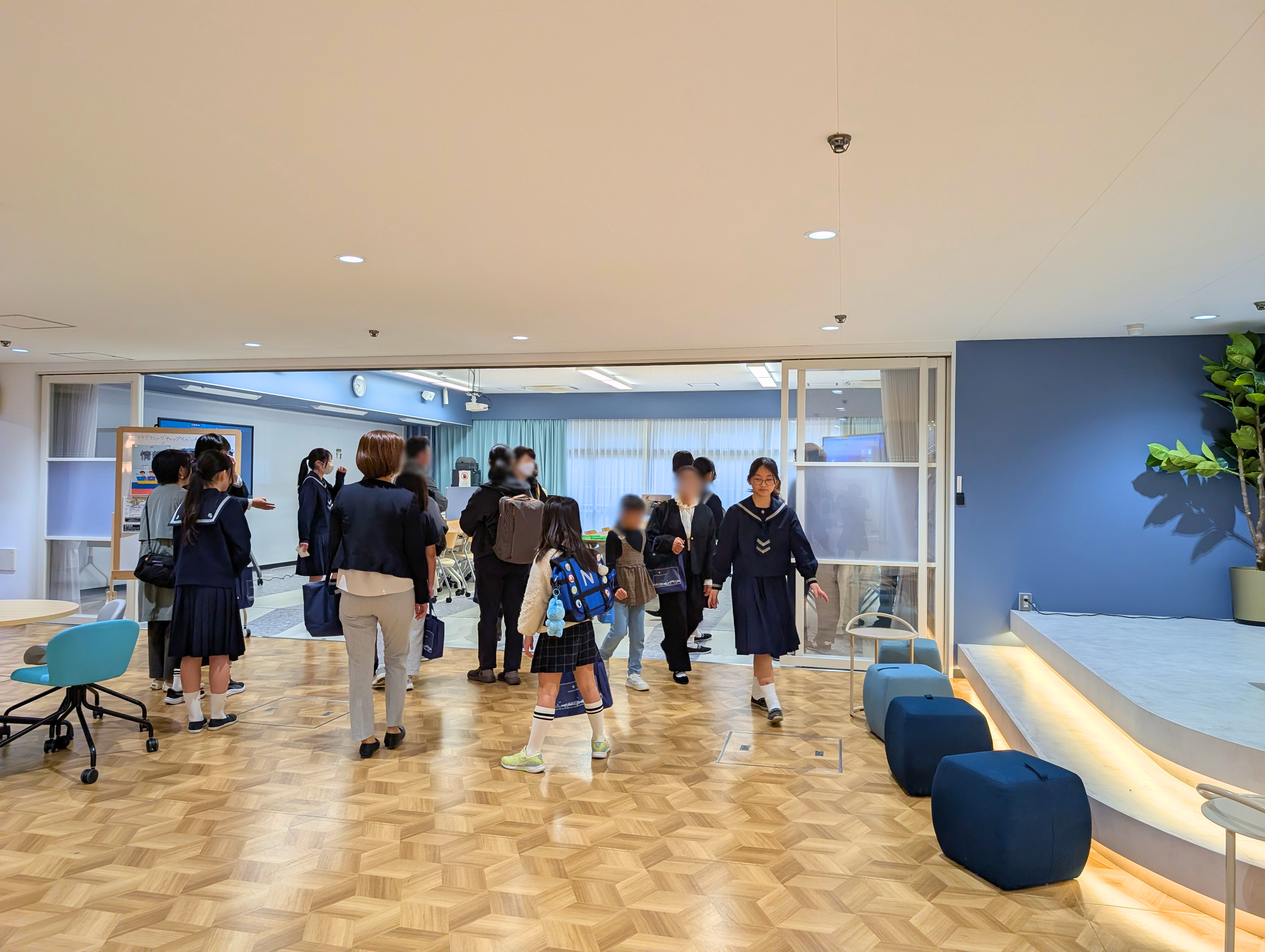 校内見学では、生徒がリノベーションを手掛けた人気のカフェテリア「リリースペース」や、最新設備を備えた「クリエイティブスペース」をご案内。実際に3Dプリンターで制作した作品に触れていただくなど、本校の先進的な学びの一端を体感していただきました。