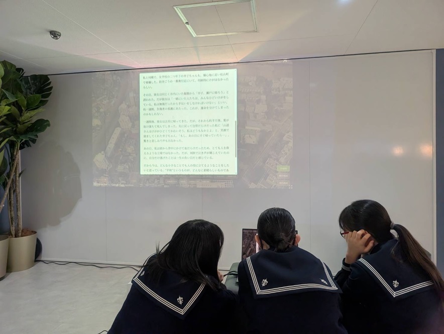 生徒たちは実際にVRゴーグルを装着し、当時の光景を再現した映像を体験。没入感のある技術がもたらす衝撃や、言葉だけでは伝わりきらない「リアリティ」の重みを肌で感じていました。